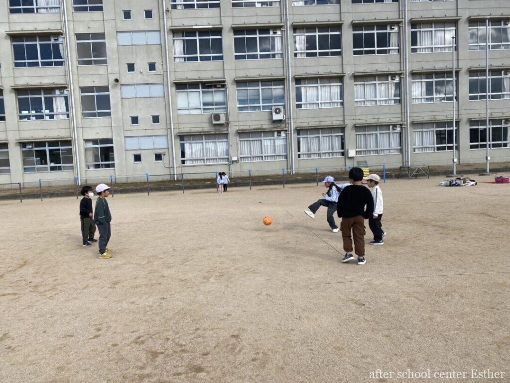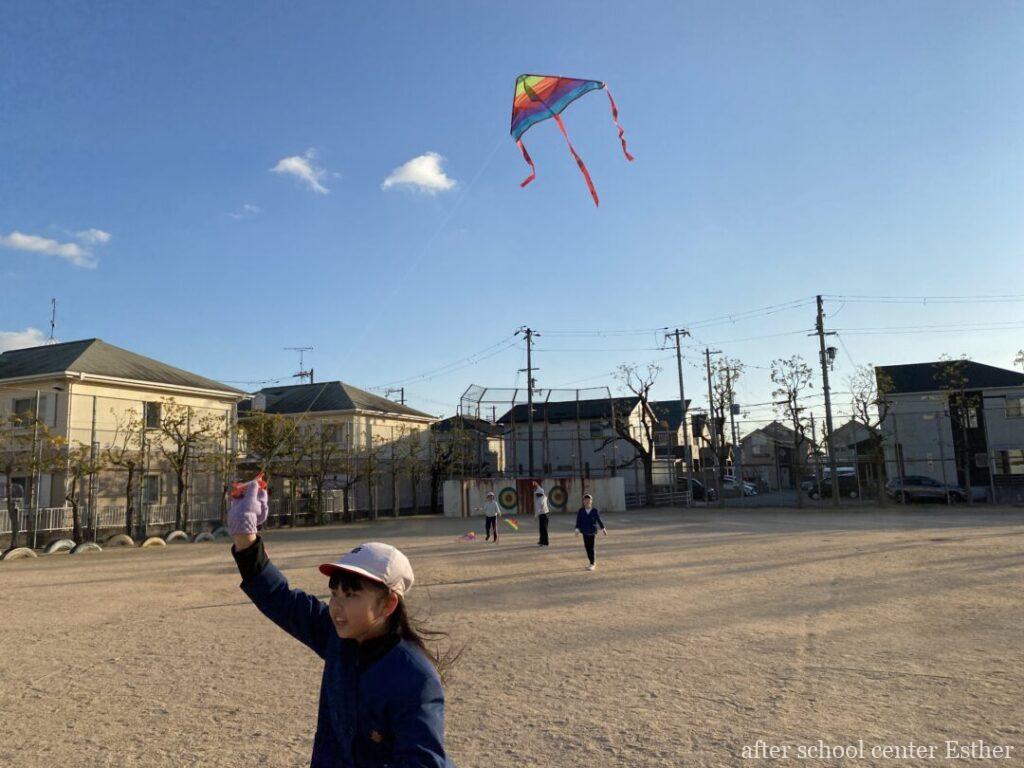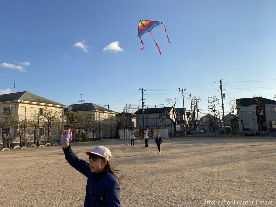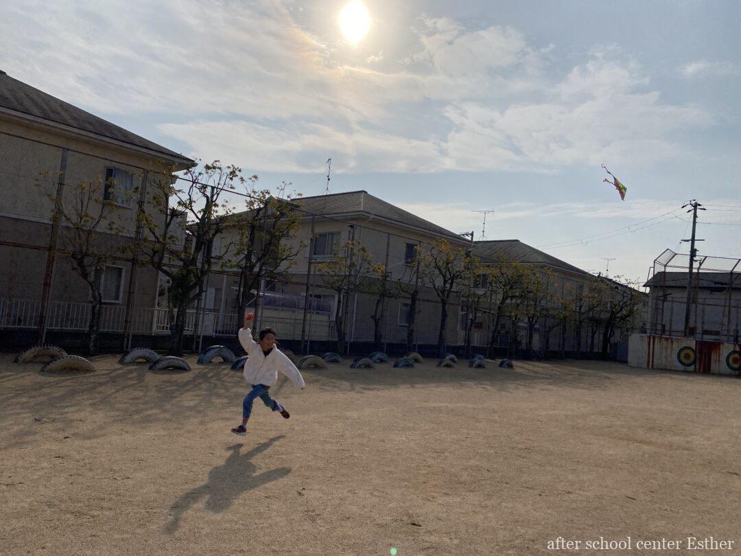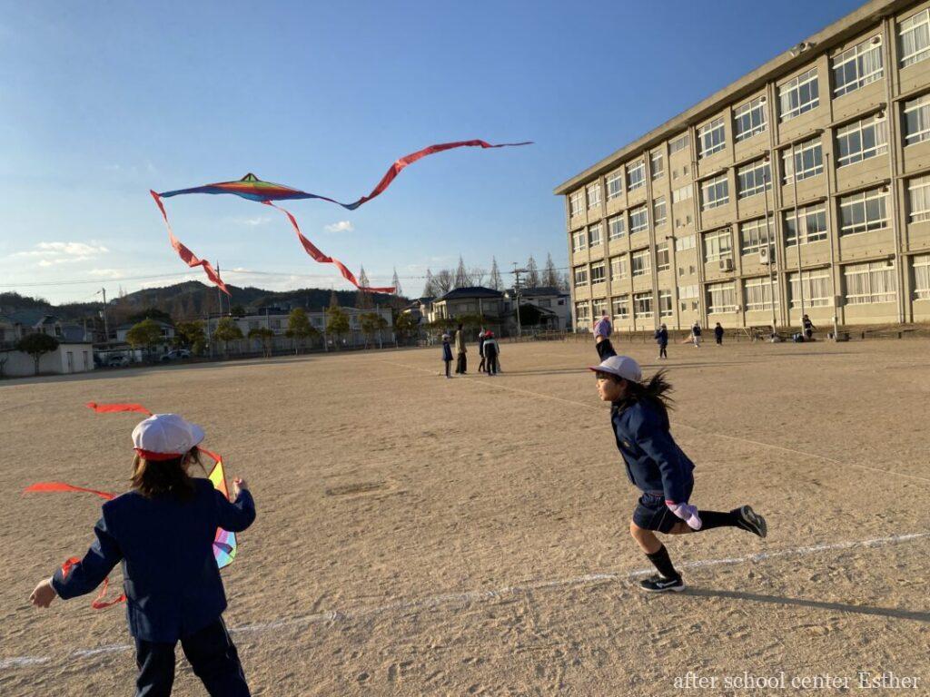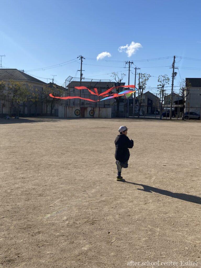 校庭あそび🏃♀️ お知らせ 2026.01.19 エステルではお庭遊びだけでなく、小学校に行って校庭遊びもしています。 校庭あそびでは、鬼ごっこやドッチボールが人気ですが、新年ということで凧揚げをして遊びました🪁 ボール遊びが苦手な子どもも氷おに・しっぽ取り・お砂に絵を描いて遊んだり、それぞれが好きな遊びをして楽しんでいます。