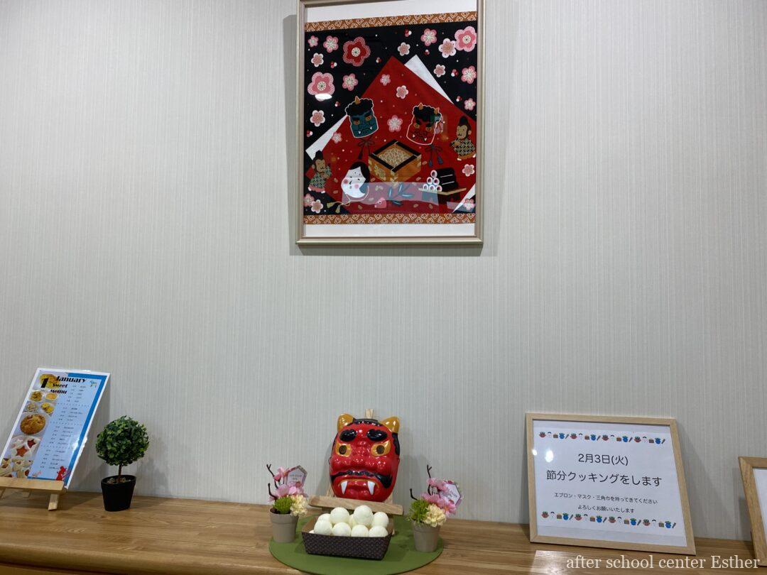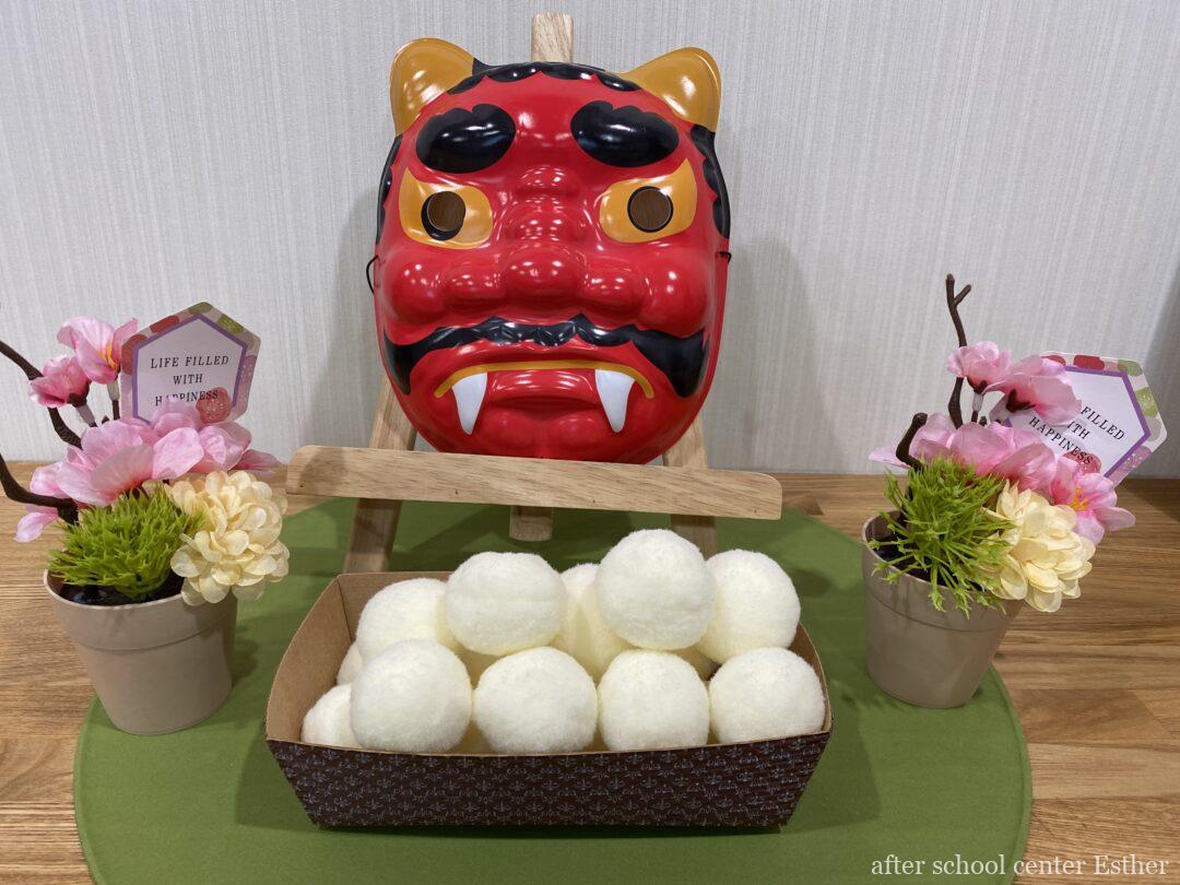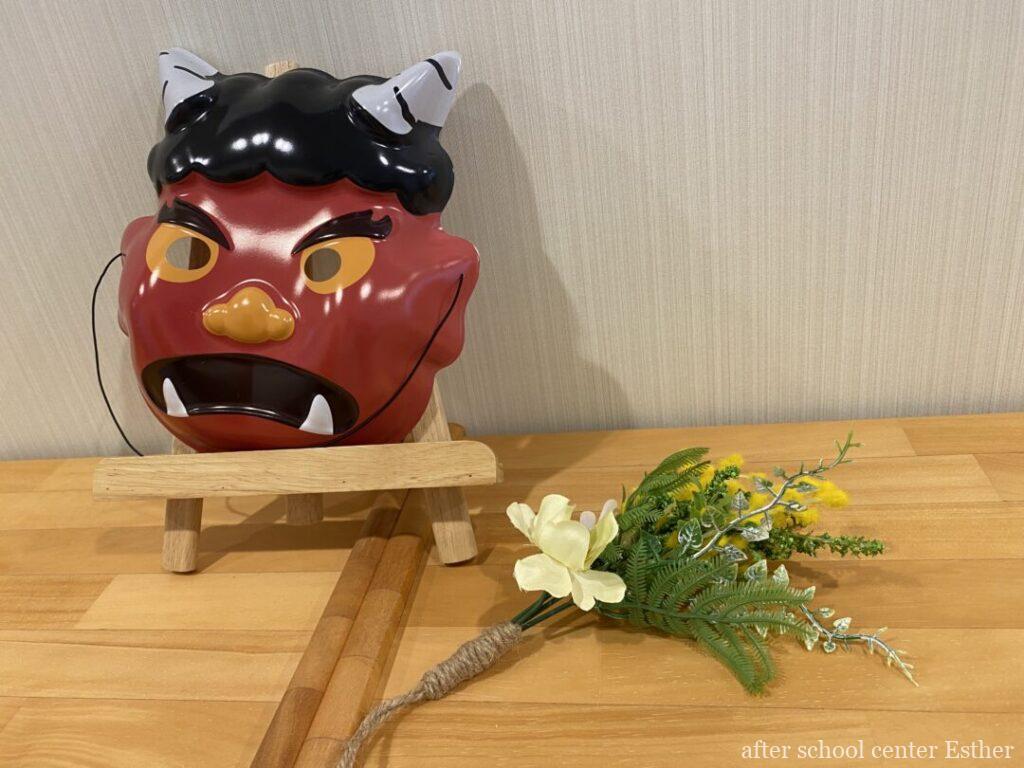 2月の飾り👹 お知らせ 2026.02.05 節分を意識した飾りに変わり、季節の行事を感じられる空間になりました。 「鬼や!」「豆まきするん?」と、子どもたちの会話も弾んでいます。 「お面つけていい?」と話しながら、節分遊びを楽しむ子どもたちの姿がありました
